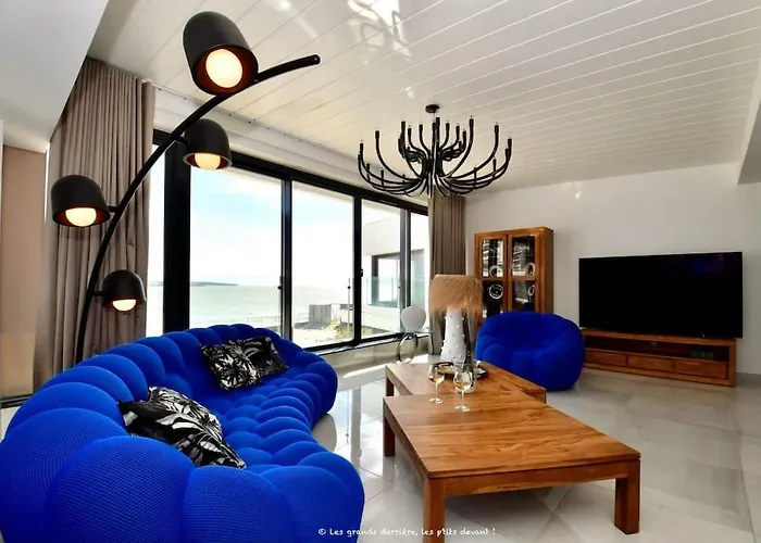 Apt 5 Etoiles, Chic & Cozy, Piscine, Vue Mer is binnen 10 minuten met de auto vanaf de Maison Des Douanes te vinden. De 89 m^2 accommodatie ligt net uit Casino Barriere en biedt directe toegang tot Plage de Foncillon. Het strand appartement is binnen 15 minuten wandelafstand van Marché Central de Royan genesteld.